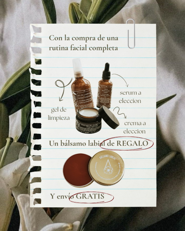 De regalo nuestro BALSAMO LABIAL ROJO elaborado con ACEITE DE COCO ORGÁNICO, ACEITE DE ALMENDRAS, VITAMINA E, CERA DE ABEJAS Y PIGMENTO NATURAL. Es una bomba de nutrición que regenera y protege tus labios, mientras les brinda un hermoso tono rojizo natural. Ideal para usar como labial y rubor diario. Es un aliado ideal para el cuidado de los labios en épocas de frio, ya que ayuda a mantener el manto hidrolipidico de la piel, recubriéndole la piel y dándole un glow increíble!!